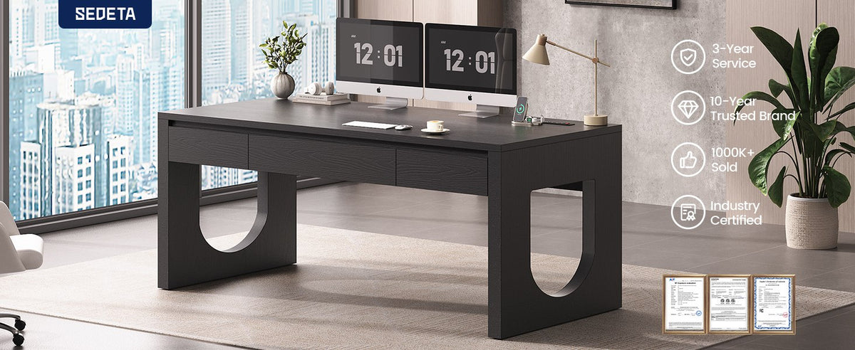 SEDETA Executive Desk with 3 Drawers & U-Shaped Legs