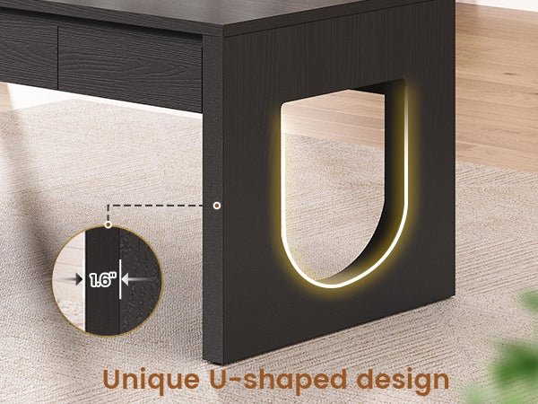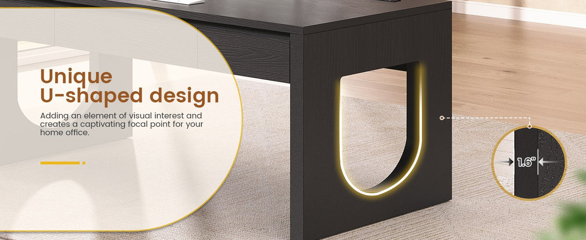 •【Sturdy U-Shaped Legs & Modern Aesthetic】Featuring a distinctive U-shaped leg design, this desk boasts a sleek, contemporary look that elevates any office or home workspace. The thick, solid leg panels offer exceptional structural stability and load-bearing capacity, ensuring the desk remains durable and wobble-free even with heavy daily use.