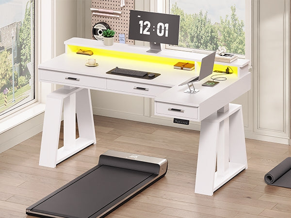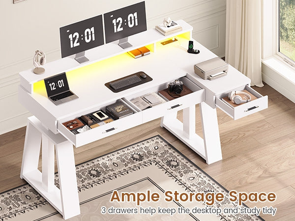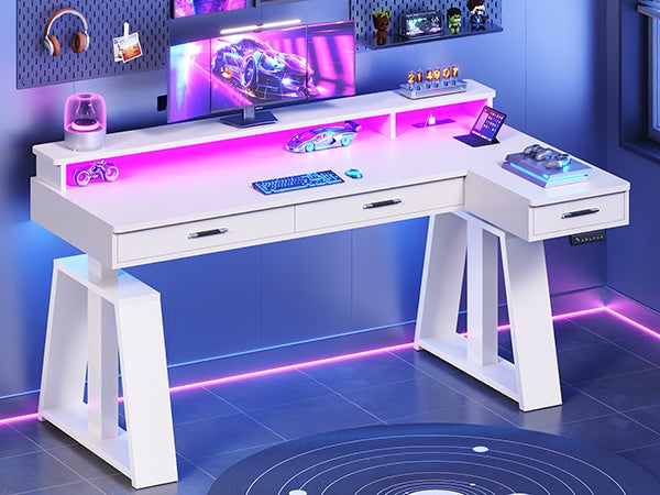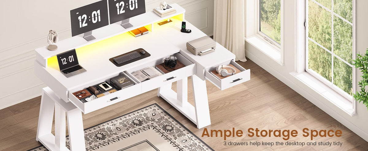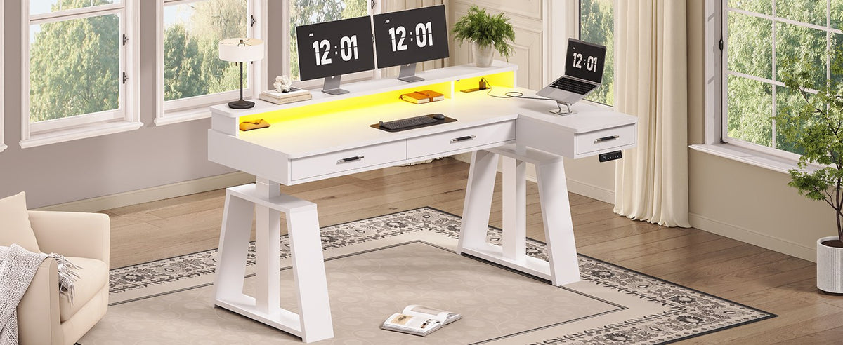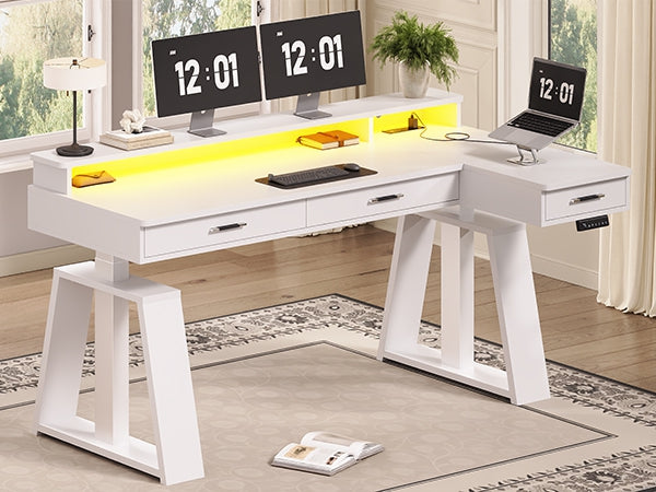 • 【3 Storage Drawers】This l shaped standing desk with storage comes with exceptional organization capabilities! We've added 3 dedicated drawers for everyday use, enabling you to work efficiently while keeping your office space neat and tidy. The executive desk with drawers can be for full-size printers, files, books, or other items, leaving large space for writing, studying, and other home office desk activities.