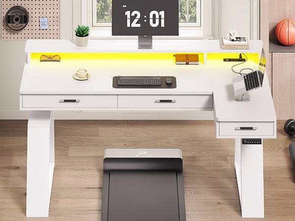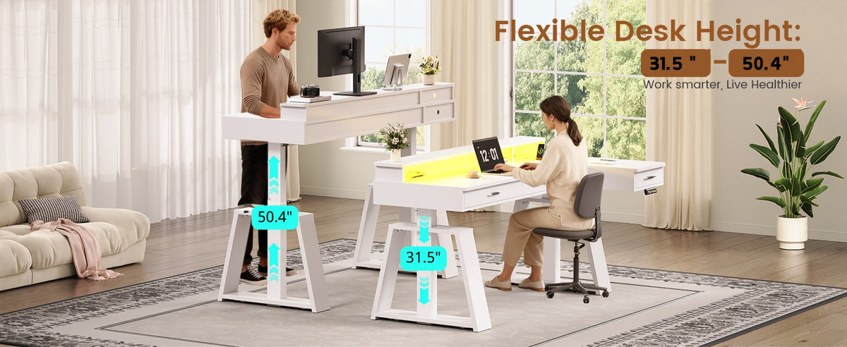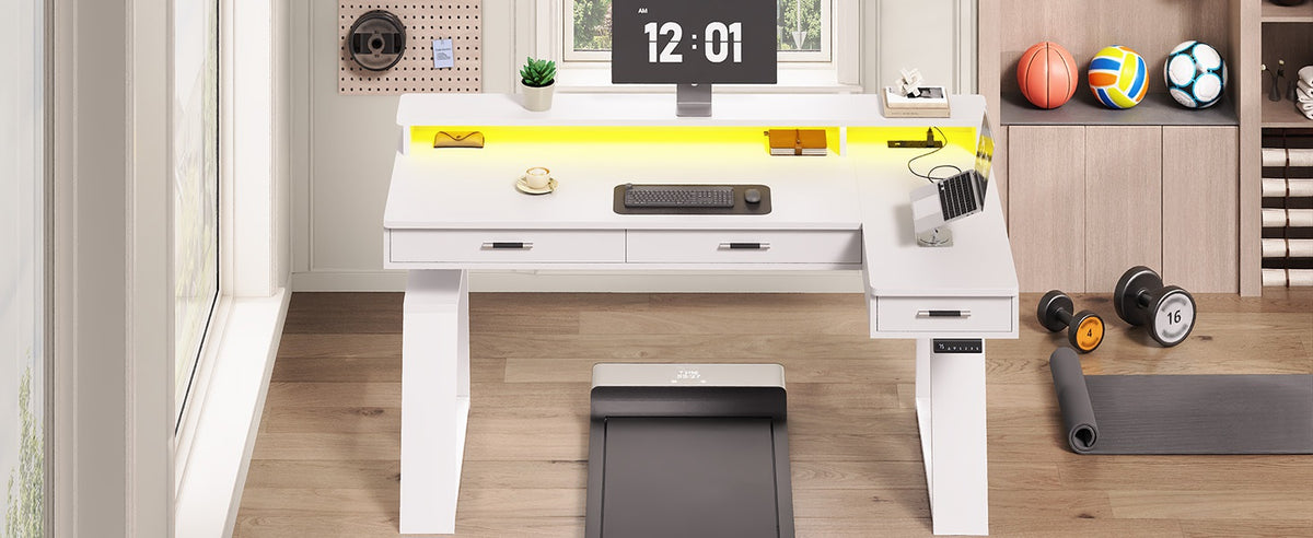 • 【Adjustable Height Standing Desk】Electric l shaped standing desk offers seamless height adjustment from 31.5" to 50.4" and with 3 customizable height presets, helping you find the perfect ergonomic position. Improve posture, reduce sedentary habits, and boost focus effortlessly.