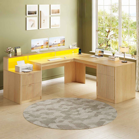 •【Spacious Space】This executive desk features a spacious tabletop measuring 66.1"L*19.7"W and 59.1"L*19.7"W. It comes with two storage drawers, one file drawer, a storage cabinet, a monitor stand, and a printer stand. It can accommodate a large amount of files, books, and other supplies, meeting your diverse storage needs. The file drawer can hold letter/A4/legal files.