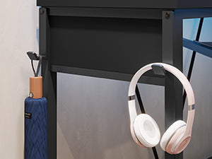 • Ample Storage Space: Includes 2-tier shelves, keyboard tray, storage bag, and headphone hook.